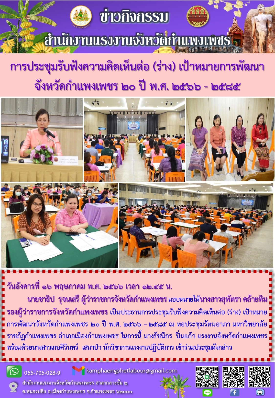 สรจ.กำแพงเพชร การประชุมรับฟังความคิดเห็นต่อ (ร่าง) เป้าหมายการพัฒนาจังหวัดกำแพงเพชร 20 ปี พ.ศ. 2566 – 2585