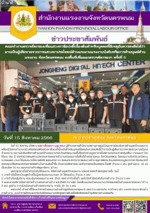 ผู้ตรวจราชการกระทรวงแรงงาน พร้อมด้วยหัวหน้าส่วนราชการสังกัดกระทรวงแรงงานจังหวัดตรัง และคณะทำงาน ลงพื้นที่เข้าตรวจเยี่ยมศูนย์ PIPO และศูนย์ NRM จังหวัดตรัง