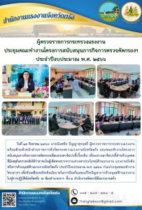 ผู้ตรวจราชการกระทรวงแรงงาน พร้อมด้วยหัวหน้าส่วนราชการสังกัดกระทรวงแรงงานจังหวัดตรัง และคณะทำงาน ร่วมประชุมคณะทำงานโครงการสนับสนุนภารกิจการตรวจคัดกรองฯจังหวัดตรัง
