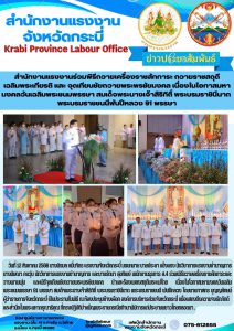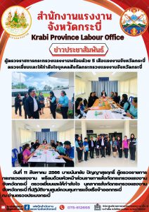 ผู้ตรวจราชการกระทรวงแรงงานพร้อมด้วย 5 เสือแรงงานจังหวัดกระบี่ ตรวจเยี่ยมและให้กำลังใจบุคคลสังกัดกระทรวงแรงงานจังหวัดกระบี่