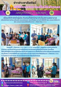 สรจ.อ่างทอง เยี่ยมให้กำลังใจผู้ประกันตนที่พักรักษาตัวในสถานพยาบาล เนื่องในโอกาสวันเฉลิมพระชนมพรรษา สมเด็จพระนางเจ้าสิริกิติ์ พระบรมราชินีนาถ พระบรมราชชนนีพันปีหลวง 12 สิงหาคม 2566