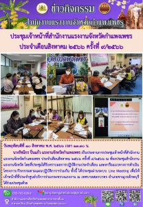ประชุมเจ้าหน้าที่สำนักงานแรงงานจังหวัดกำแพงเพชร ประจำเดือนสิงหาคม 2566 ครั้งที่ 9/2566