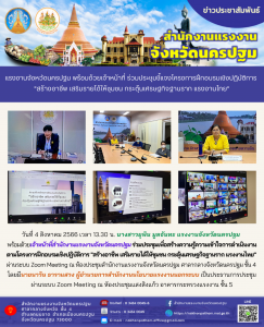 สรจ.ชลบุรี ร่วมประชุมเพื่อติดตามความคืบหน้าของการปฏิบัติงาน ตามมาตรฐานการปฏิบัติงานและแบบตรวจคัดกรองเบื้องต้น (แบบ รบ 1)