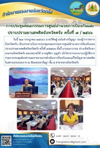 สรจ.ตรัง ร่วมการประชุมคณะกรรมการศูนย์อำนวยการป้องกันและปราบปรามยาเสพติดจังหวัดตรัง ครั้งที่ 7/2566