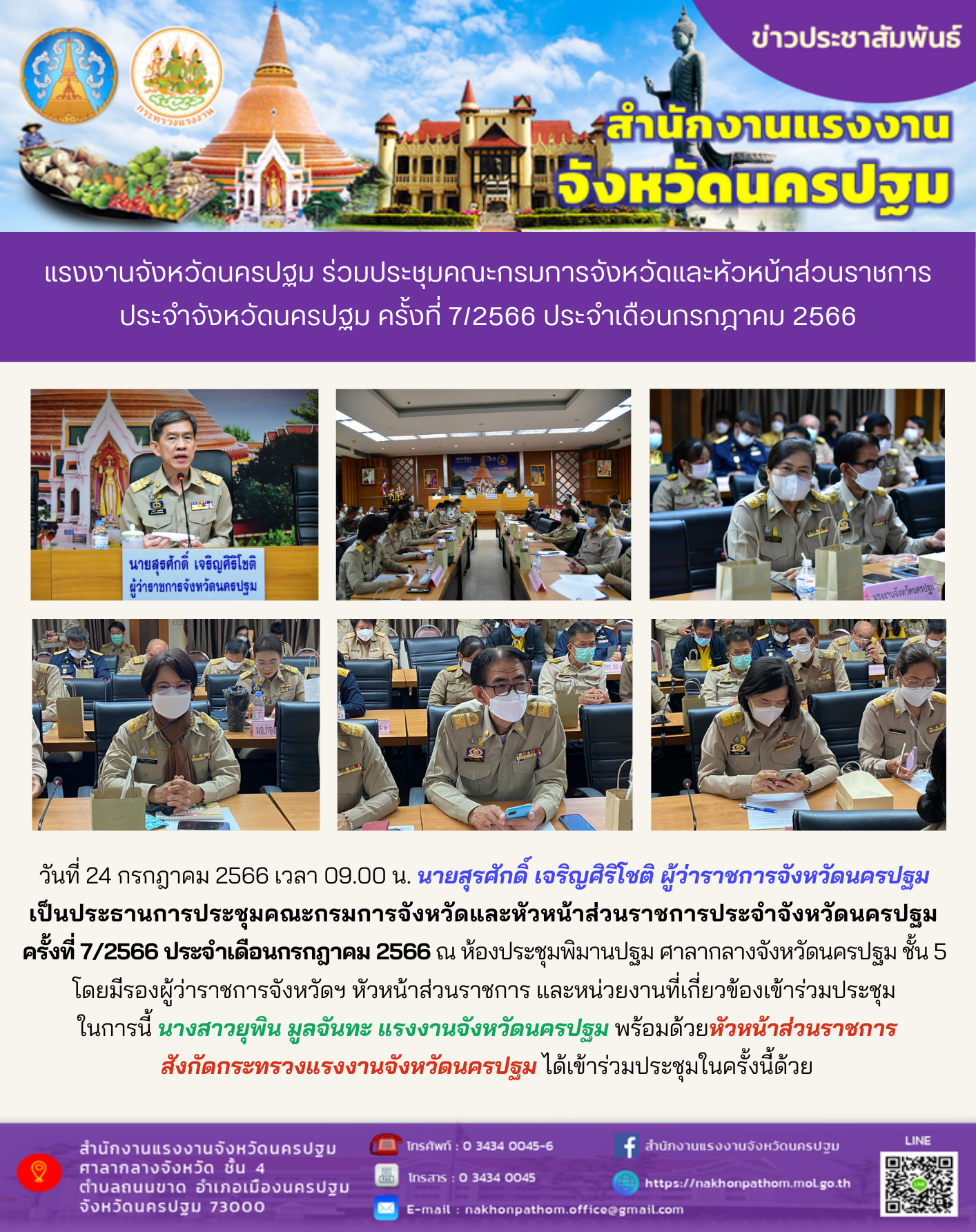 สรจ.นครปฐม ร่วมประชุมคณะกรมการจังหวัดและหัวหน้าส่วนราชการประจำจังหวัดนครปฐม ครั้งที่ 7/2566 ประจำเดือนกรกฎาคม 2566