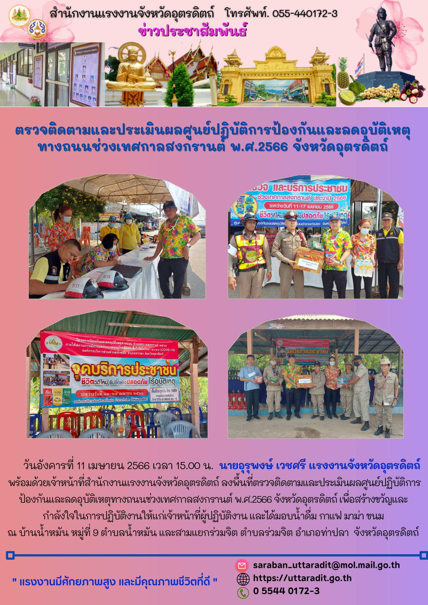 สรจ.อต. ตรวจติดตามและประเมินผลศูนย์ปฏิบัติการป้องกันและลดอุบัติเหตุ ทางถนนช่วงเทศกาลสงกรานต์ พ.ศ.2566 จังหวัดอุตรดิตถ์