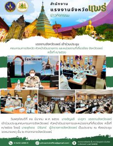 แรงงานจังหวัดแพร่ เข้าร่วมประชุมคณะกรมการจังหวัด หัวหน้าส่วนราชการ และหน่วยงานที่เกี่ยวข้อง จังหวัดแพร่ ครั้งที่ ๓/๒๕๖๖