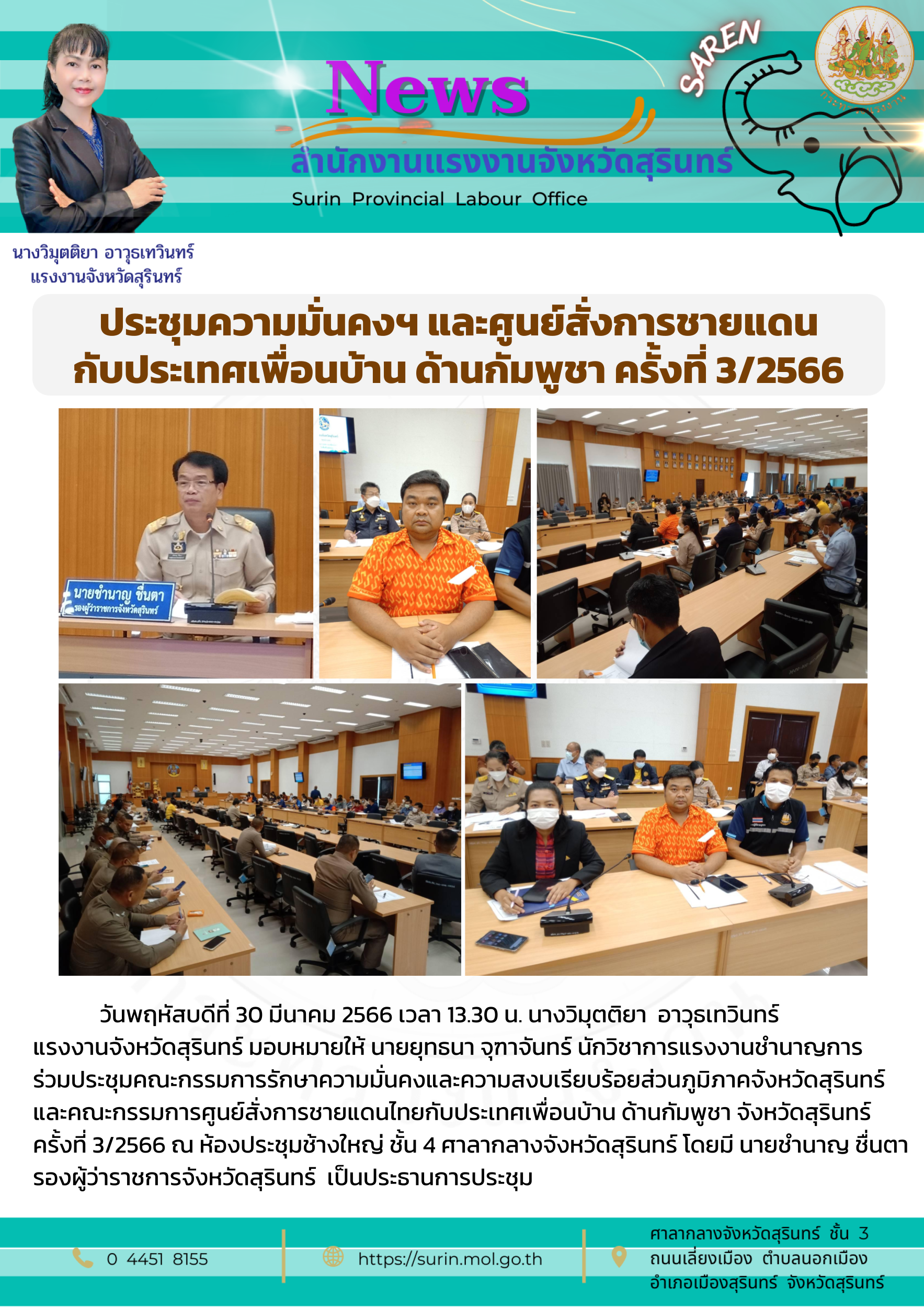 สรจ.สุรินทร์ ประชุมความมั่นคงฯ และศูนย์สั่งการชายแดน กับประเทศเพื่อนบ้าน ด้านกัมพูชา ครั้งที่ 3/2566