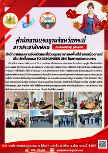 สำนักงานแรงงานจังหวัดกระบี่ ร่วมบูรณาการลงพื้นที่อำเภอเมืองกระบี่ เพื่อจัดตั้งชมรม To Be Number One ในสถานประกอบการ