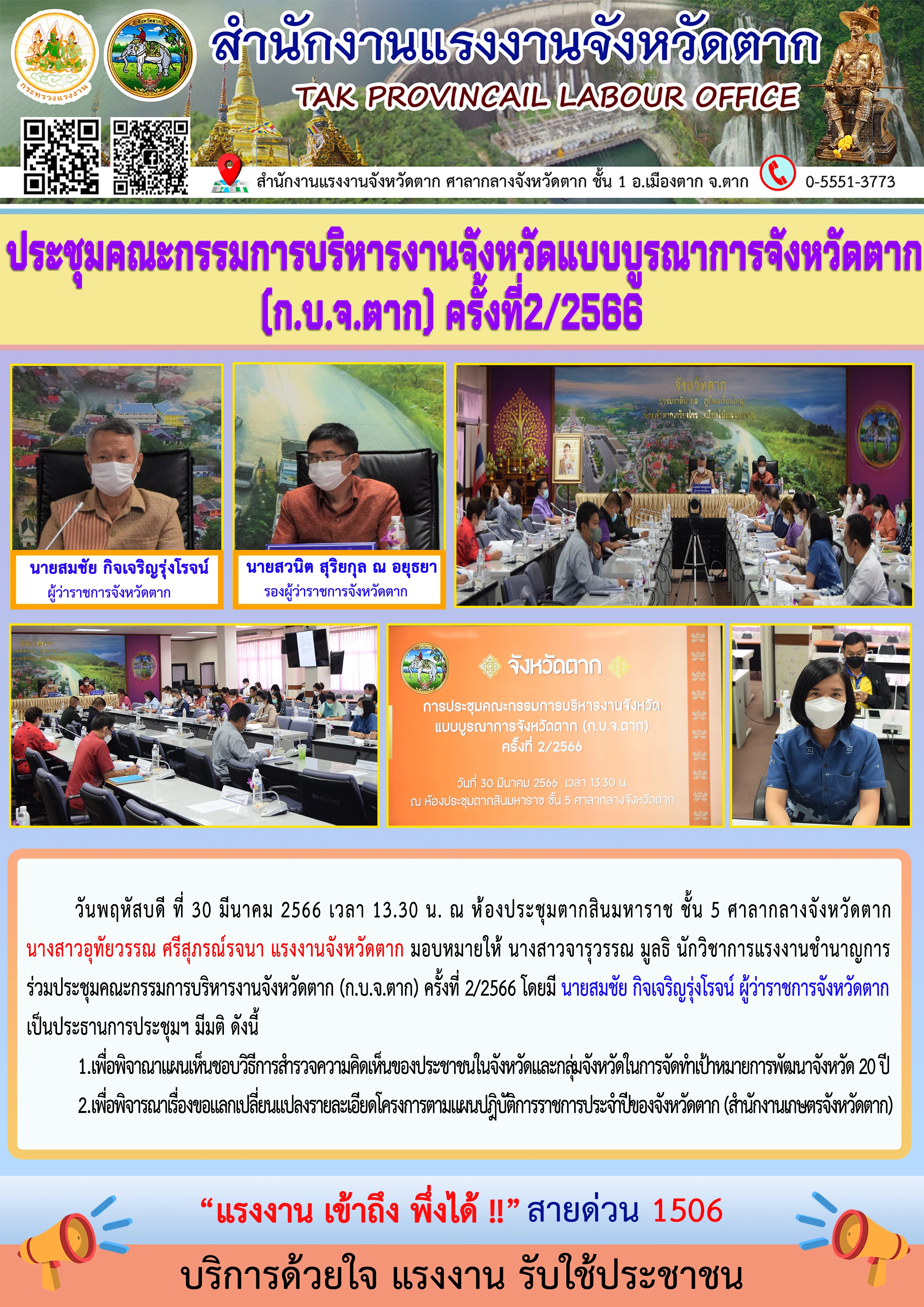 สรจ.ตาก ประชุมคณะกรรมการบริหารงานจังหวัดแบบบูรณาการจังหวัดตาก (ก.บ.จ.ตาก) ครั้งที่2/2566