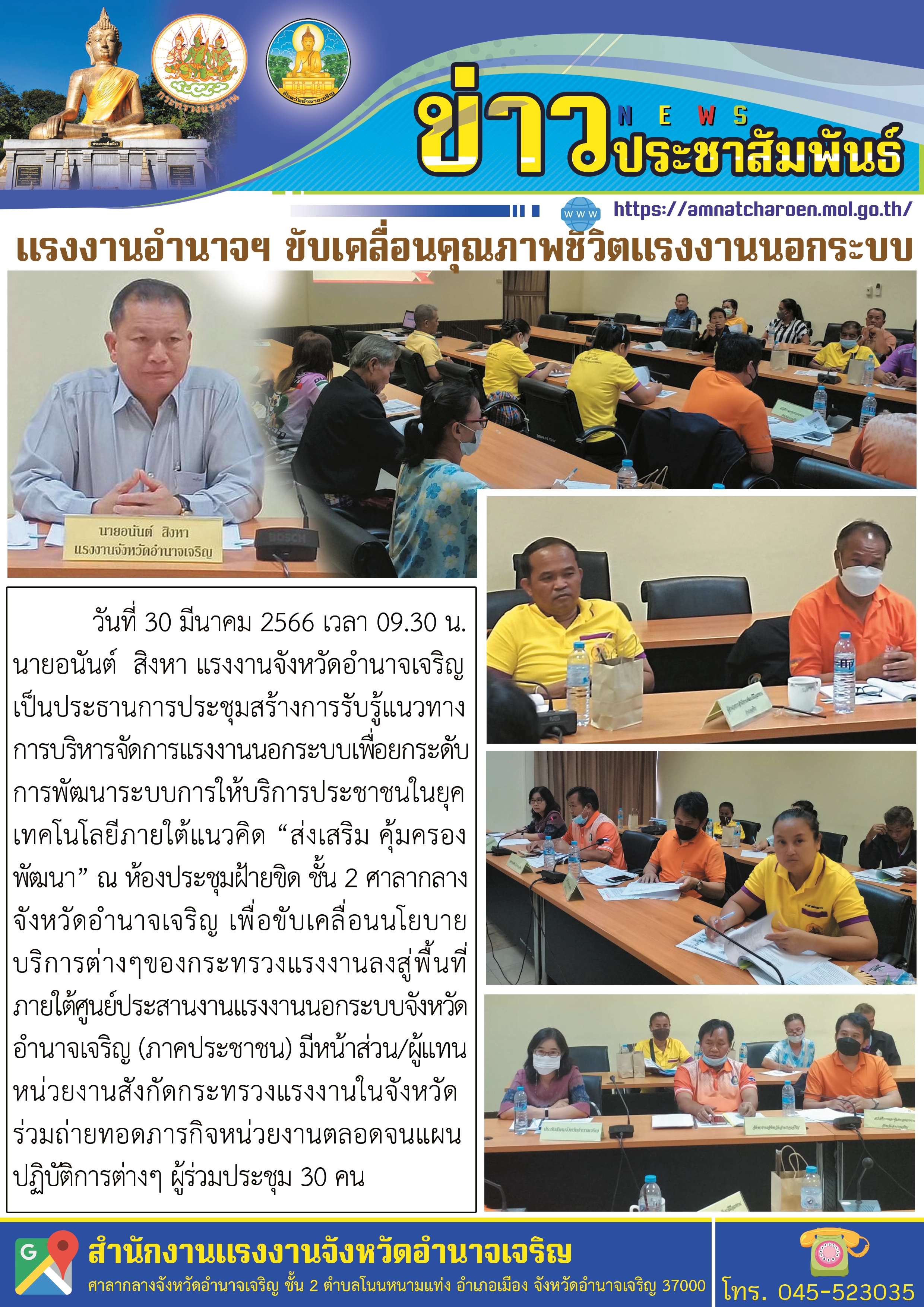 สำนักงานแรงงานจังหวัดอำนาจเจริญ ขับเคลื่อน ห่วงใย คุณภาพชีวิตแรงงานนอกระบบ