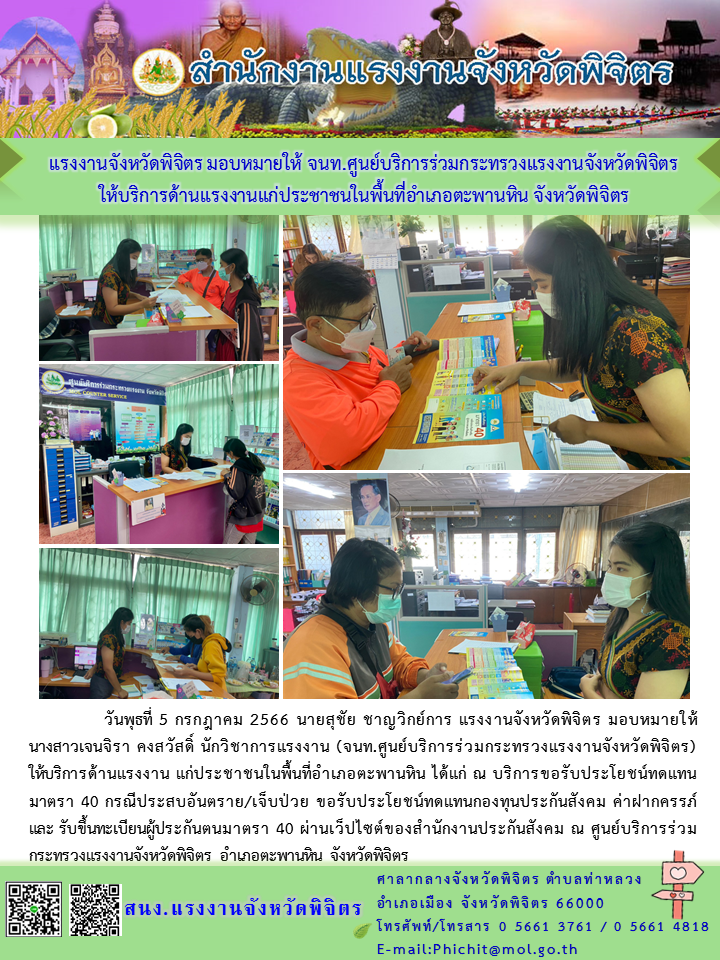 จนท.ศูนย์บริการร่วมกระทรวงแรงงานจังหวัดพิจิตร ให้บริการด้านแรงงานแก่ประชาชนในพื้นที่อำเภอตะพานหิน จังหวัดพิจิตร