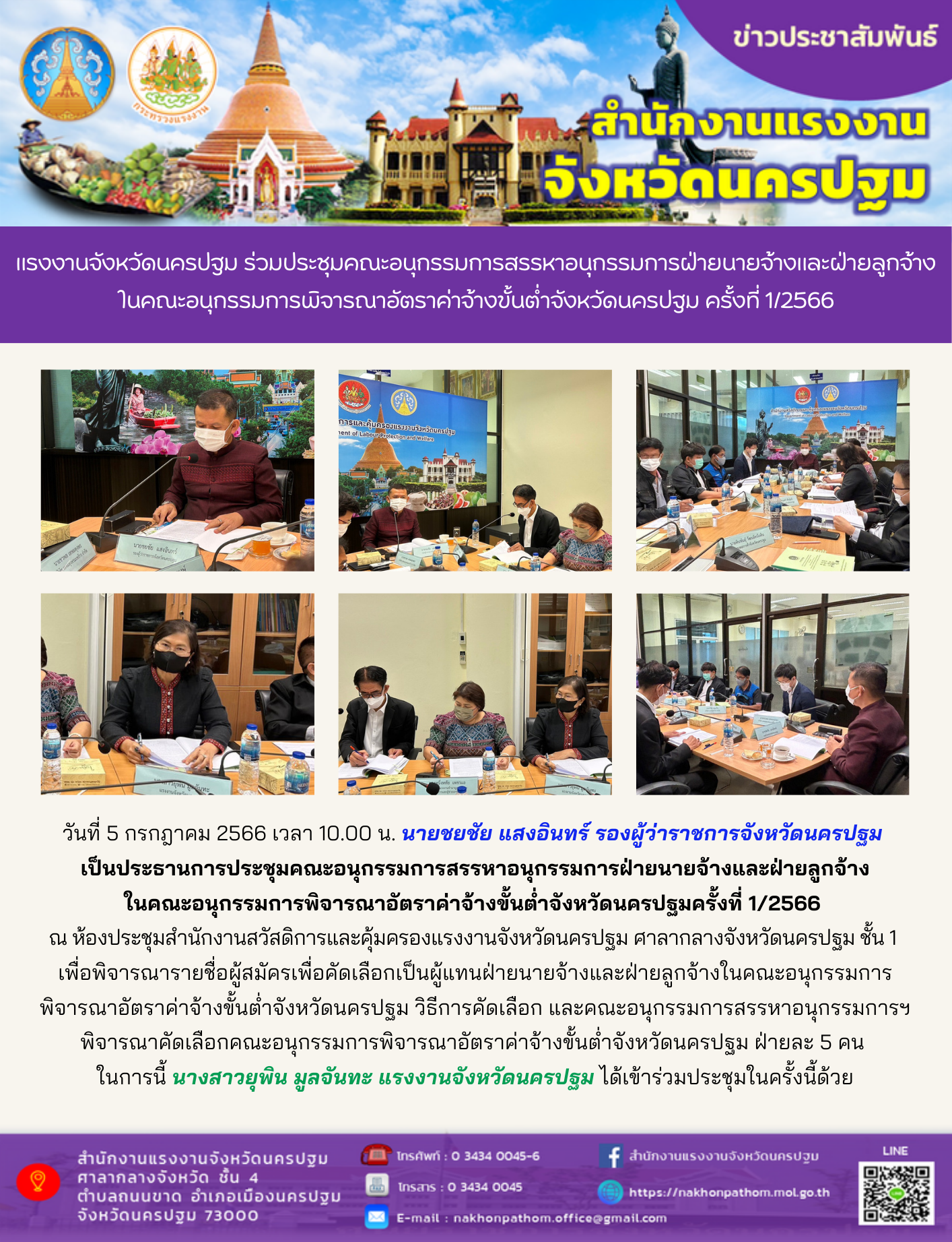 สรจ.นครปฐม ร่วมประชุมคณะอนุกรรมการสรรหาอนุกรรมการฝ่ายนายจ้างและฝ่ายลูกจ้างในคณะอนุกรรมการพิจารณาอัตราค่าจ้างขั้นต่ำจังหวัดนครปฐม ครั้งที่ 1/2566