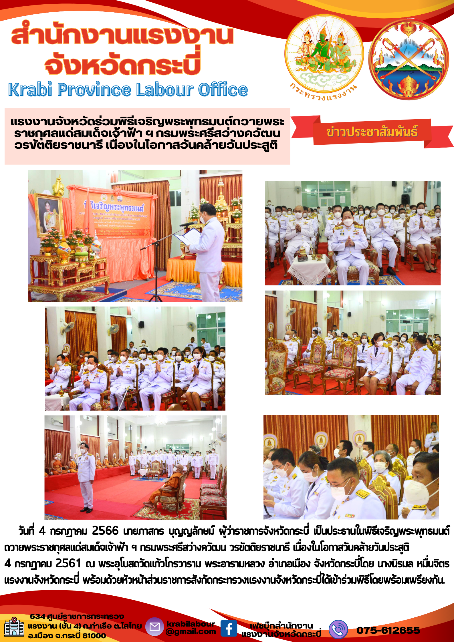 สรจ.กระบี่่ ร่วมพิธีเจริญพระพุทธมนต์ถวายพระราชกุศลแด่สมเด็จเจ้าฟ้า ฯ กรมพระศรีสว่างควัฒน วรขัตติยราชนารี เนื่องในโอกาสวันคล้ายวันประสูติ