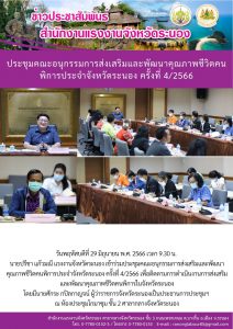 สรจ.ระนอง ประชุมหัวหน้าส่วนราชการสังกัดกระทรวงแรงงาน ครั้งที่ 8 ปีงบประมาณ 2566