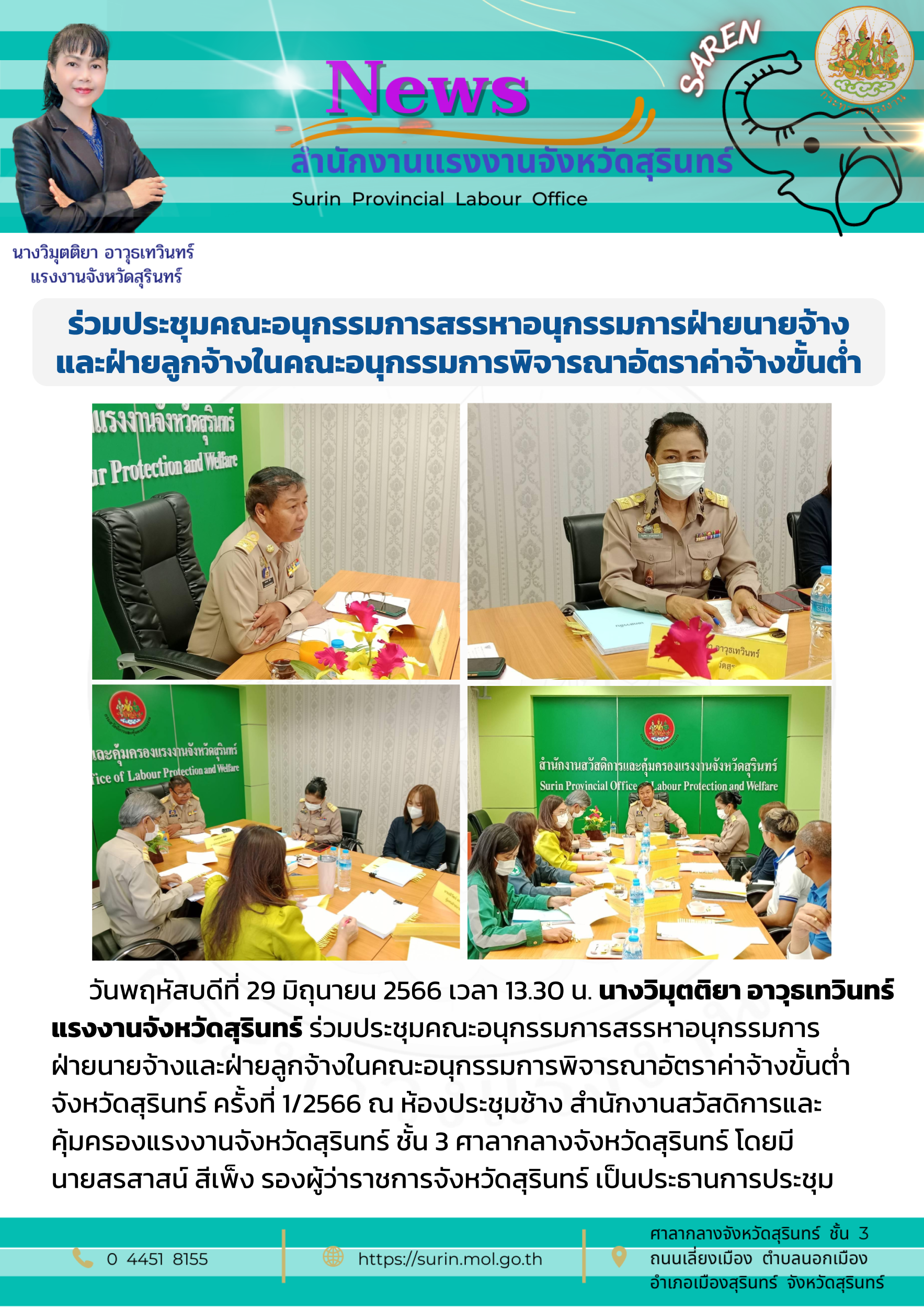สรจ.สุรินทร์ ร่วมประชุมคณะอนุกรรมการสรรหาอนุกรรมการฝ่ายนายจ้างและฝ่ายลูกจ้างในคณะอนุกรรมการพิจารณาอัตราค่าจ้างขั้นต่ำ