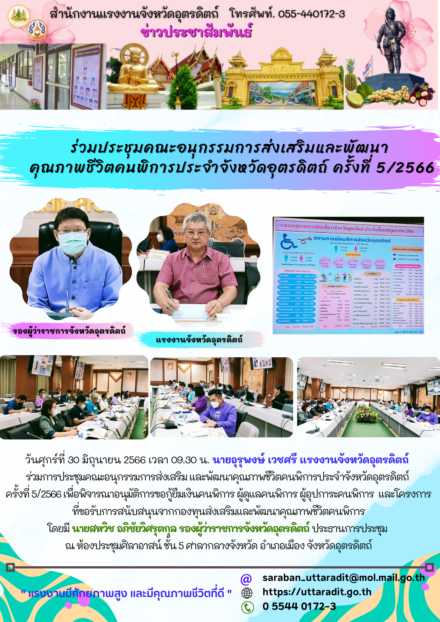 สรจ.อต. ร่วมประชุมคณะอนุกรรมการส่งเสริมและพัฒนาคุณภาพชีวิตคนพิการประจำจังหวัดอุตรดิตถ์ ครั้งที่ 5/2566