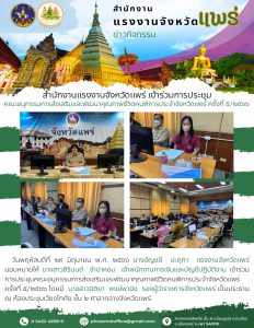 สำนักงานแรงงานจังหวัดแพร่ เข้าร่วมการประชุมคณะทำงานโต๊ะข่าวด้านความมั่นคงและยาเสพติดระดับพื้นที่จังหวัดแพร่ ครั้งที่ ๖/๒๕๖๖