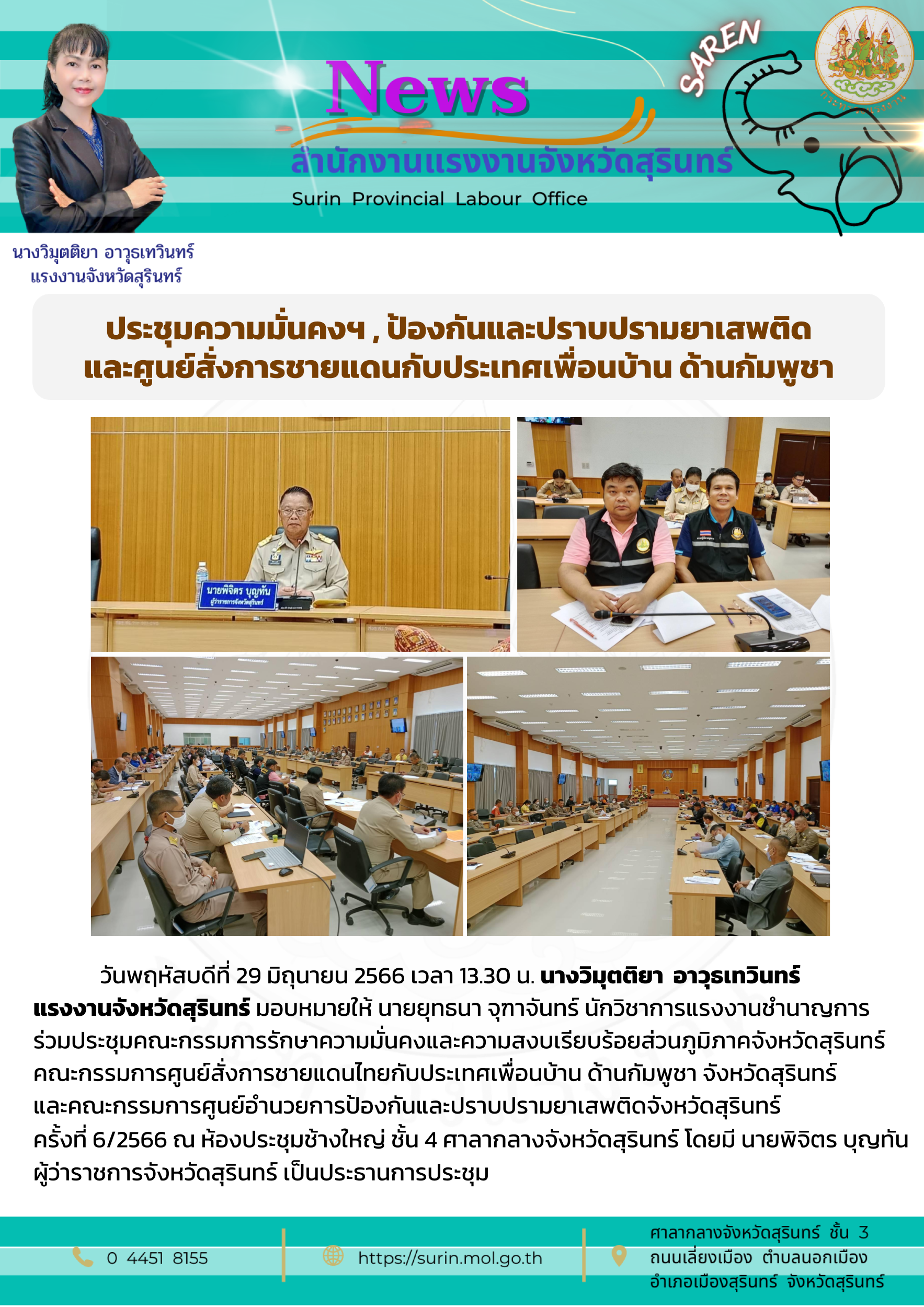 ประชุม 5 เสือ กระทรวงแรงงานจังหวัดอุบลราชธานี ประจำเดือนมิถุนายน 2566