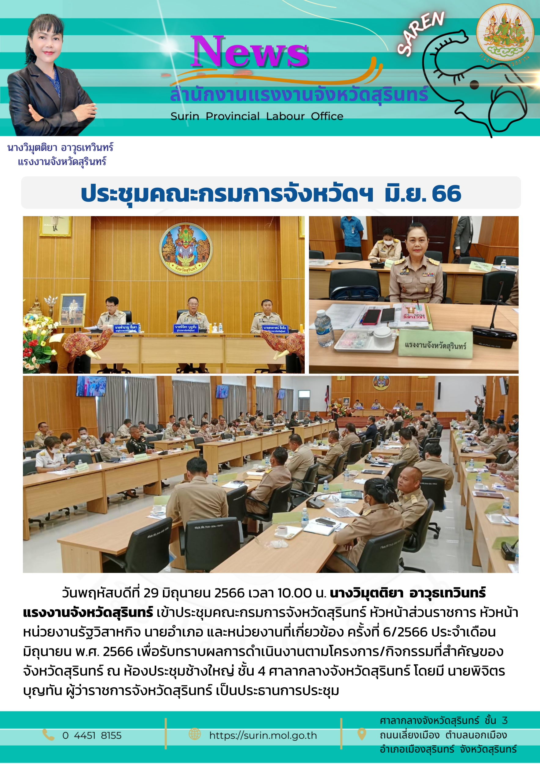สรจ.สุรินทร์ ประชุมคณะกรมการจังหวัดฯ มิ.ย. 66