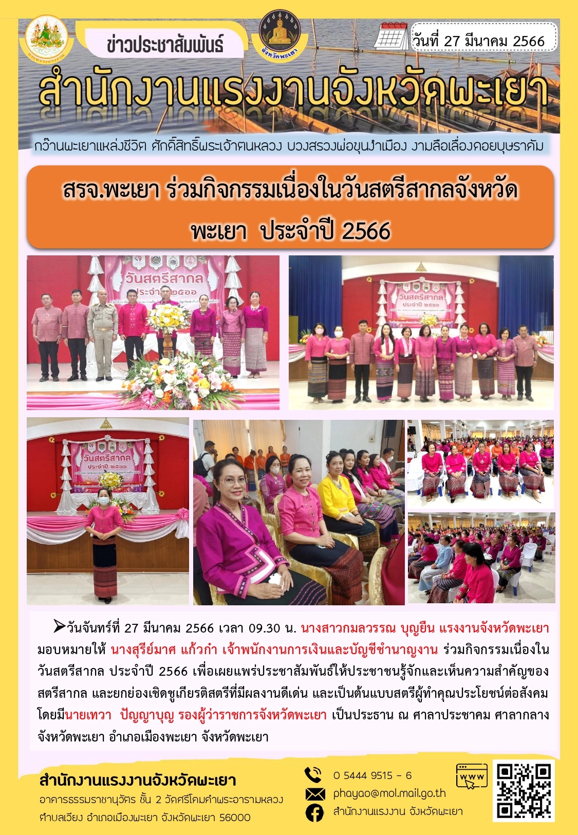 สรจ.พะเยา ร่วมกิจกรรมเนื่องในวันสตรีสากลจังหวัดพะเยา ประจำปี 2566