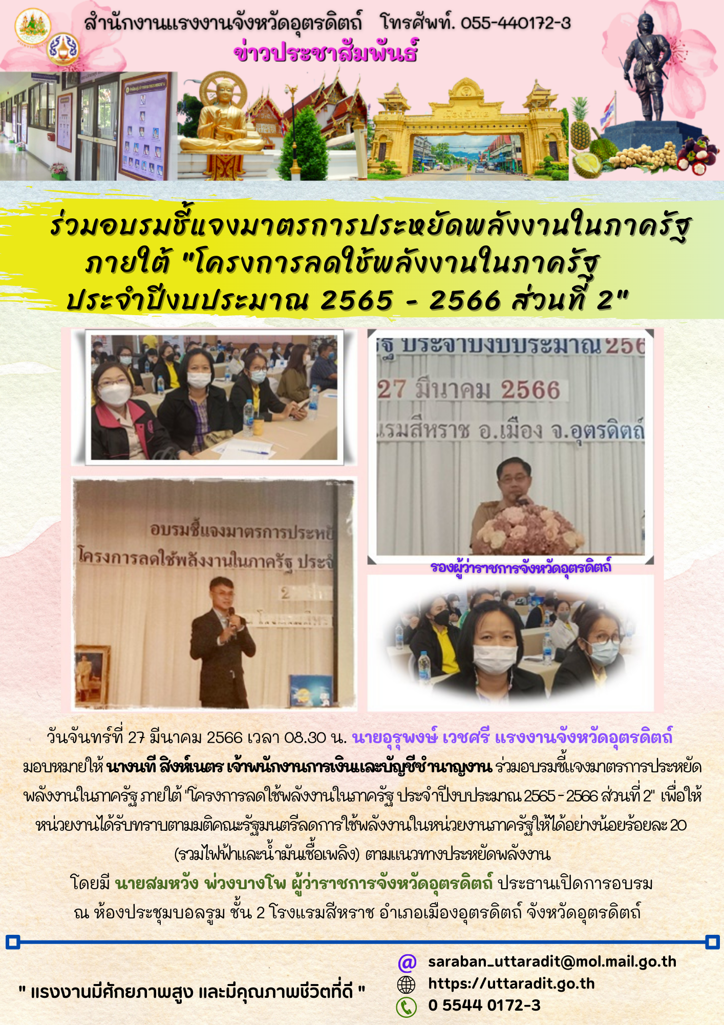 สรจ.อต. ร่วมอบรมชี้แจงมาตรการประหยัดพลังงานในภาครัฐ ภายใต้ “โครงการลดใช้พลังงานในภาครัฐ ประจำปีงบประมาณ 2565 – 2566 ส่วนที่ 2”