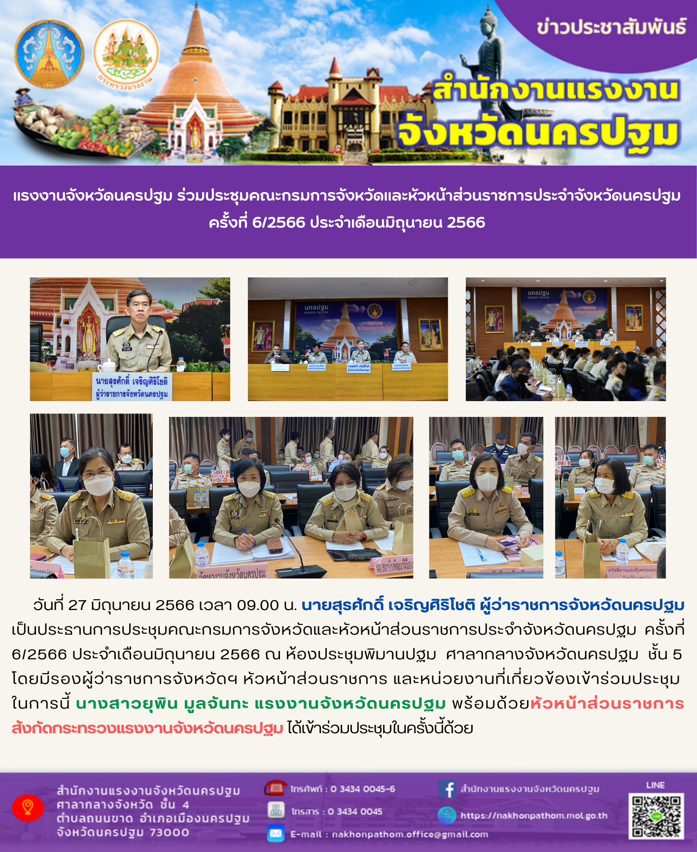 สรจ.นครปฐม ร่วมประชุมคณะกรมการจังหวัดและหัวหน้าส่วนราชการประจำจังหวัดนครปฐม ครั้งที่ 6/2566 ประจำเดือนมิถุนายน 2566