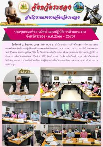 สรจ.ระยอง จัดการประชุมคณะทำงานจัดทำแผนปฏิบัติการด้านแรงงานจังหวัดระยอง (พ.ศ. 2566 – 2570) ประจำปีงบประมาณ พ.ศ. 2566
