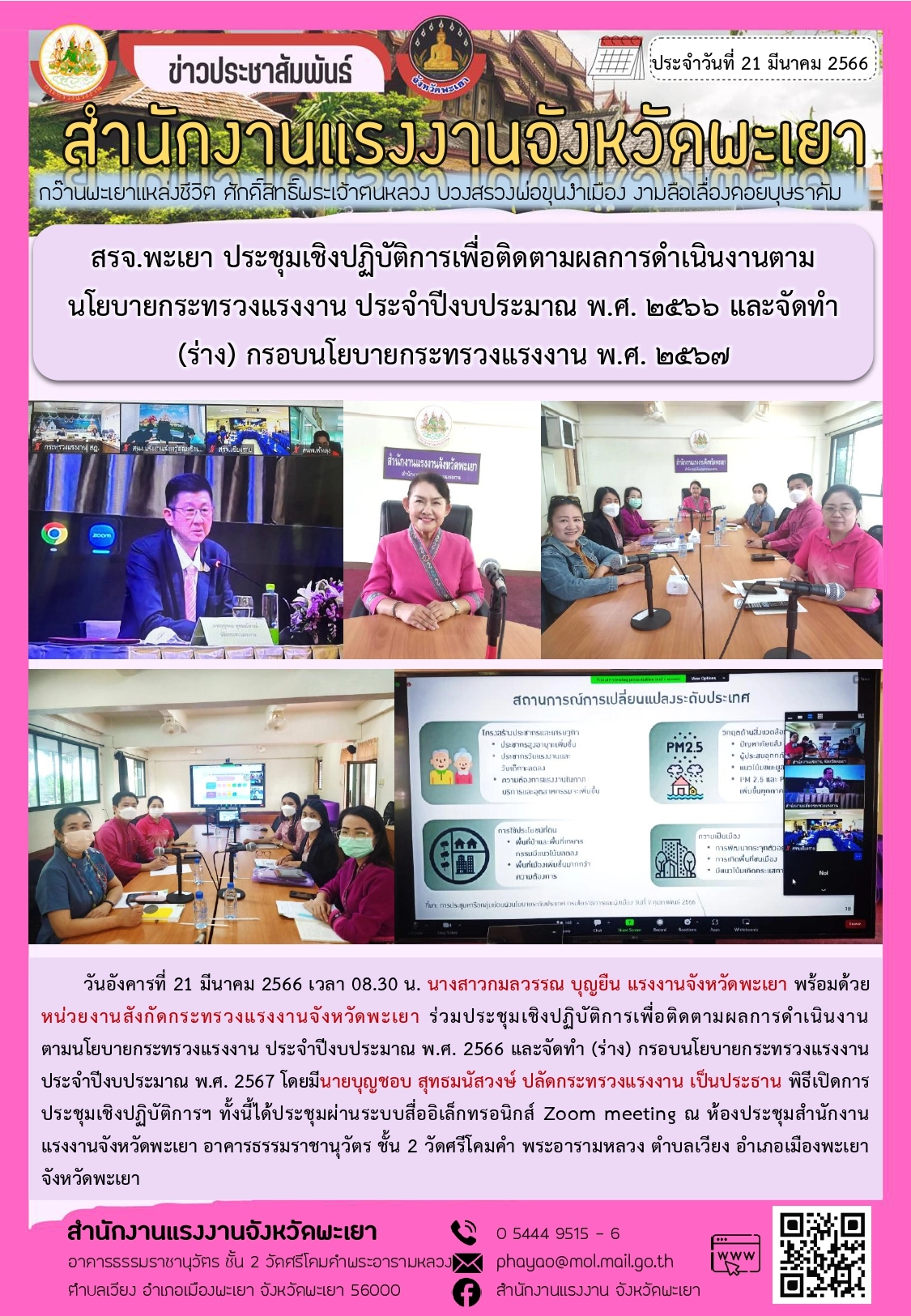 สรจ.พะเยา ประชุมเชิงปฏิบัติการเพื่อติดตามผลการดำเนินงานตามนโยบายกระทรวงแรงงาน ประจำปีงบประมาณ พ.ศ. 2566 และจัดทำ (ร่าง) กรอบนโยบายกระทรวงแรงงาน พ.ศ. 2567