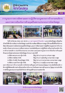 สรจ.สตูล ร่วมบูรณาการตรวจติดตามผลการปฏิบัติตามกฎหมายการจ้างงานคนพิการ และการตรวจป้องกันการค้ามนุษย์ในสถานประกอบการจังหวัดสตูล