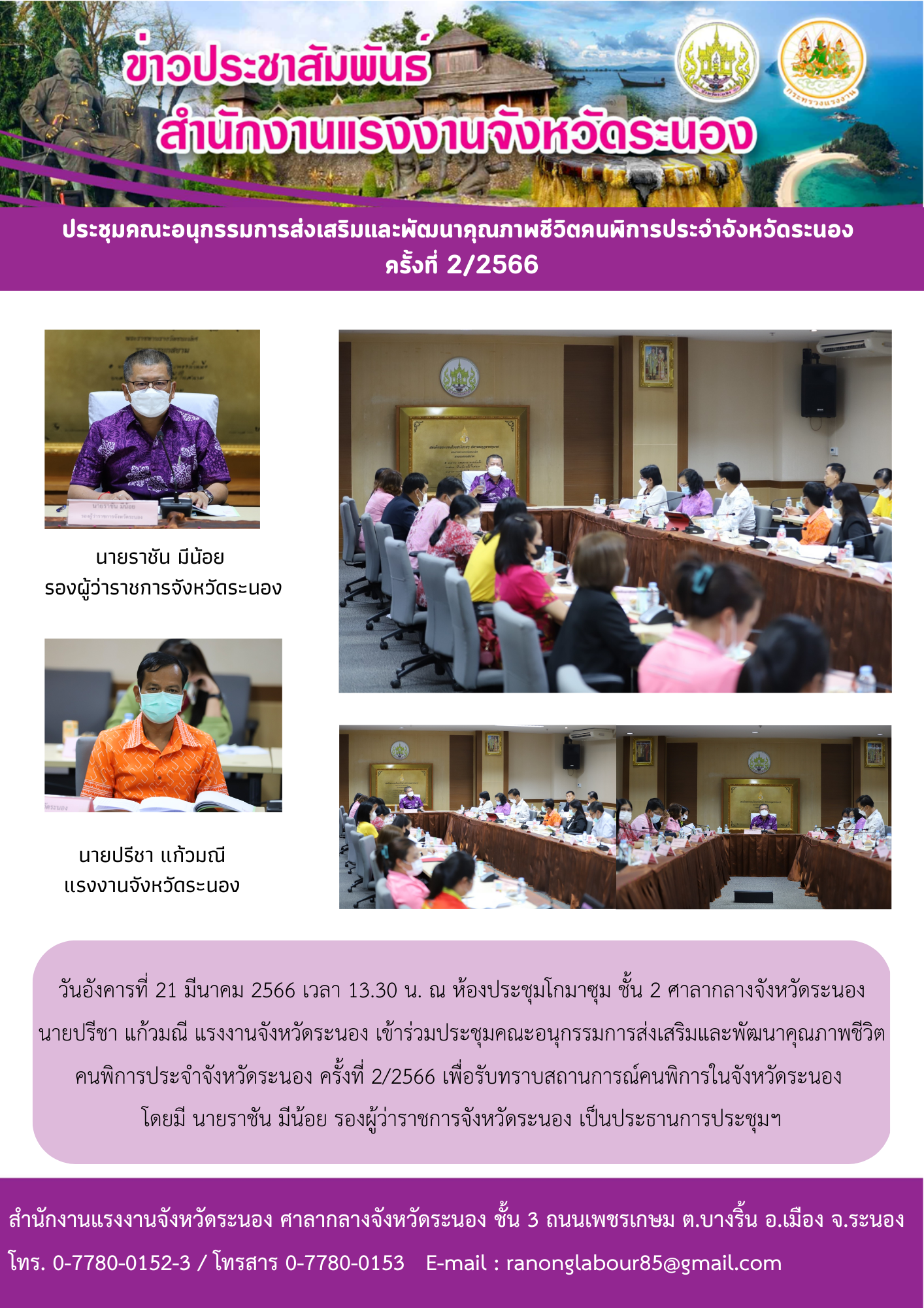 สรจ.ระนอง ประชุมคณะอนุกรรมการส่งเสริมและพัฒนาคุณภาพชีวิตคนพิการ ครั้งที่ 2/2566