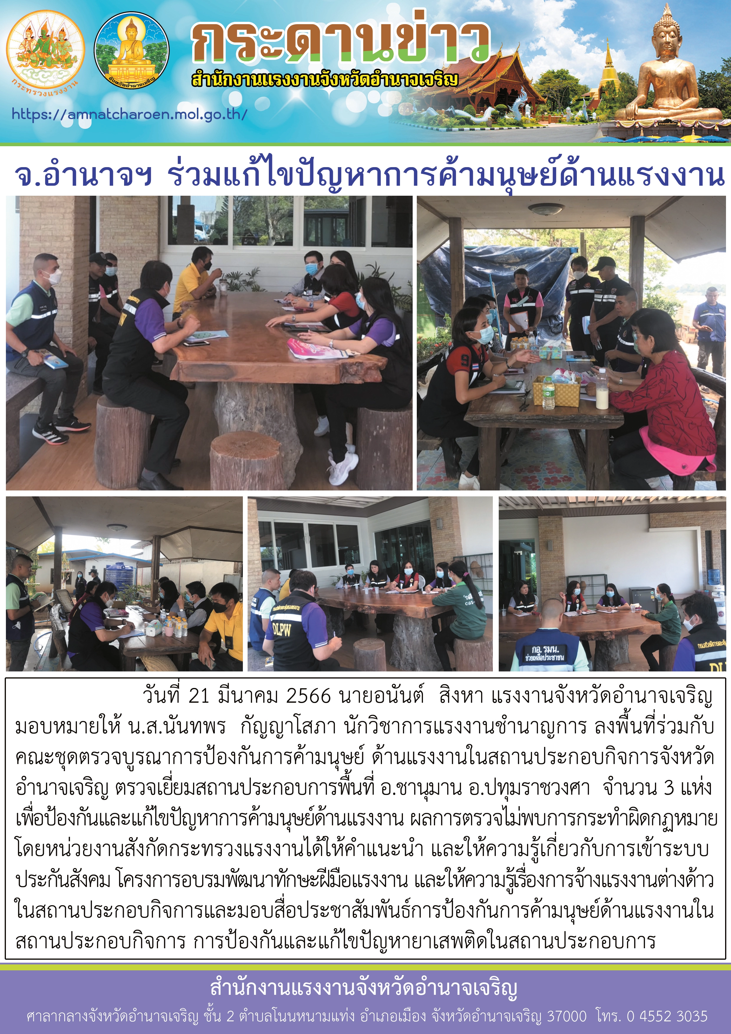 สรจ.อำนาจเจริญ ร่วมใจป้องกันแก้ไขปัญหาการค้ามนุษย์ด้านแรงงาน