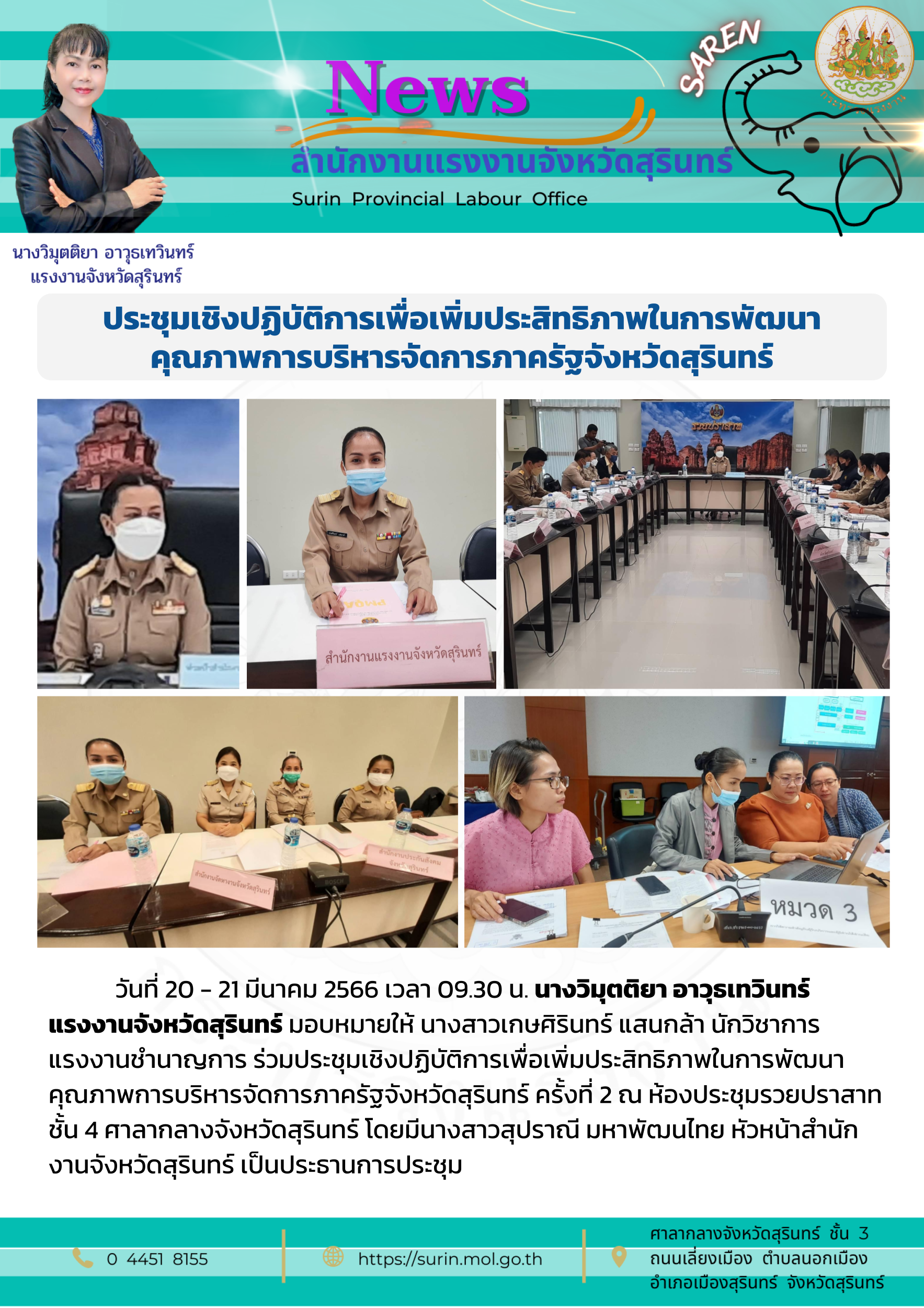 5 เสือแรงงานจังหวัดมุกดาหาร ร่วมประชุมเชิงปฏิบัติการเพื่อติดตามผลการดำเนินงานตามนโยบายกระทรวงแรงงาน ประจำปีงบประมาณ พ.ศ. 2566