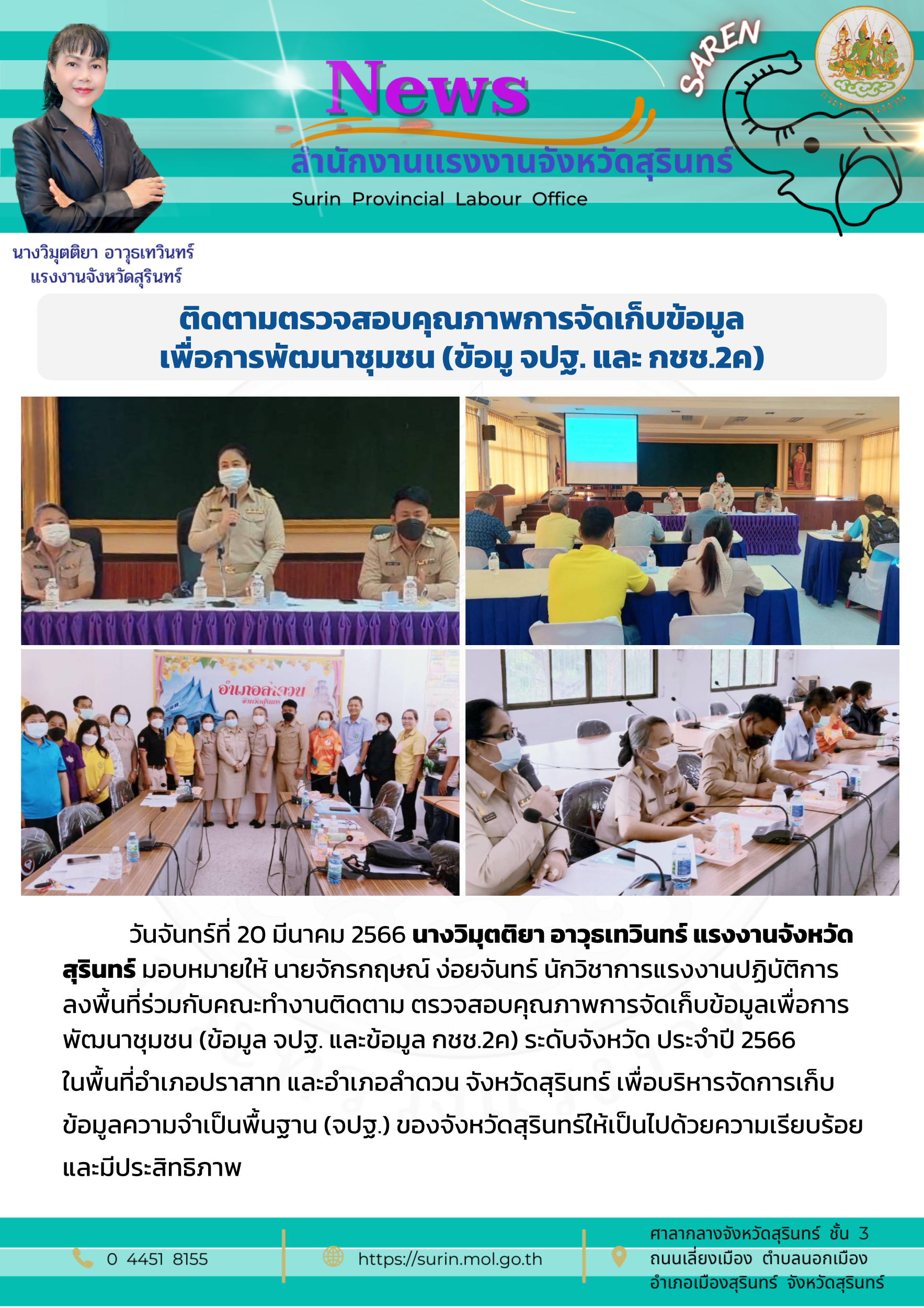 สรจ.สุรินทร์ ติดตามตรวจสอบคุณภาพการจัดเก็บข้อมูล เพื่อการพัฒนาชุมชน (ข้อมู จปฐ. และ กชช.2ค)