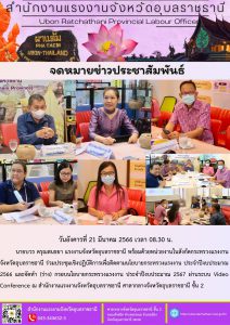 สรจ.อุบลราชธานี ร่วมประชุมเชิงปฏิบัติการเพื่อติดตามนโยบายกระทรวงแรงงาน ประจำปีงบประมาณ 2566 และจัดทำ (ร่าง) กรอบนโยบายกระทรวงแรงงาน ประจำปีงบประมาณ 2567