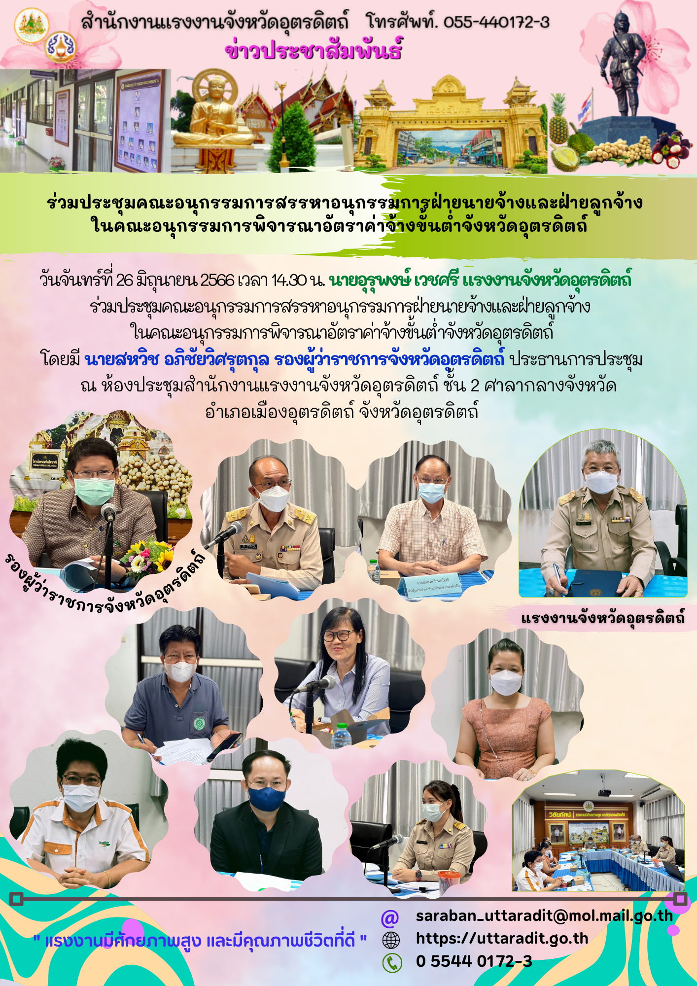 สรจ.อต. ร่วมประชุมคณะอนุกรรมการสรรหาอนุกรรมการฝ่ายนายจ้างและฝ่ายลูกจ้าง ในคณะอนุกรรมการพิจารณาอัตราค่าจ้างขั้นต่ำจังหวัดอุตรดิตถ์