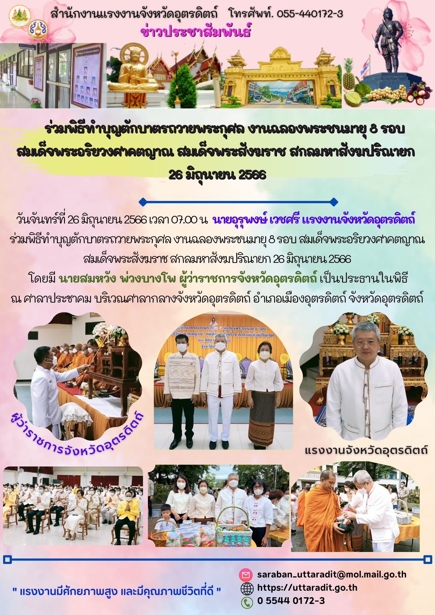 สรจ.อต. ร่วมพิธีทำบุญตักบาตรถวายพระกุศล งานฉลองพระชนมายุ 8 รอบ สมเด็จพระอริยวงศาคตญาณ สมเด็จพระสังฆราช สกลมหาสังฆปริณายก 26 มิถุนายน 2566