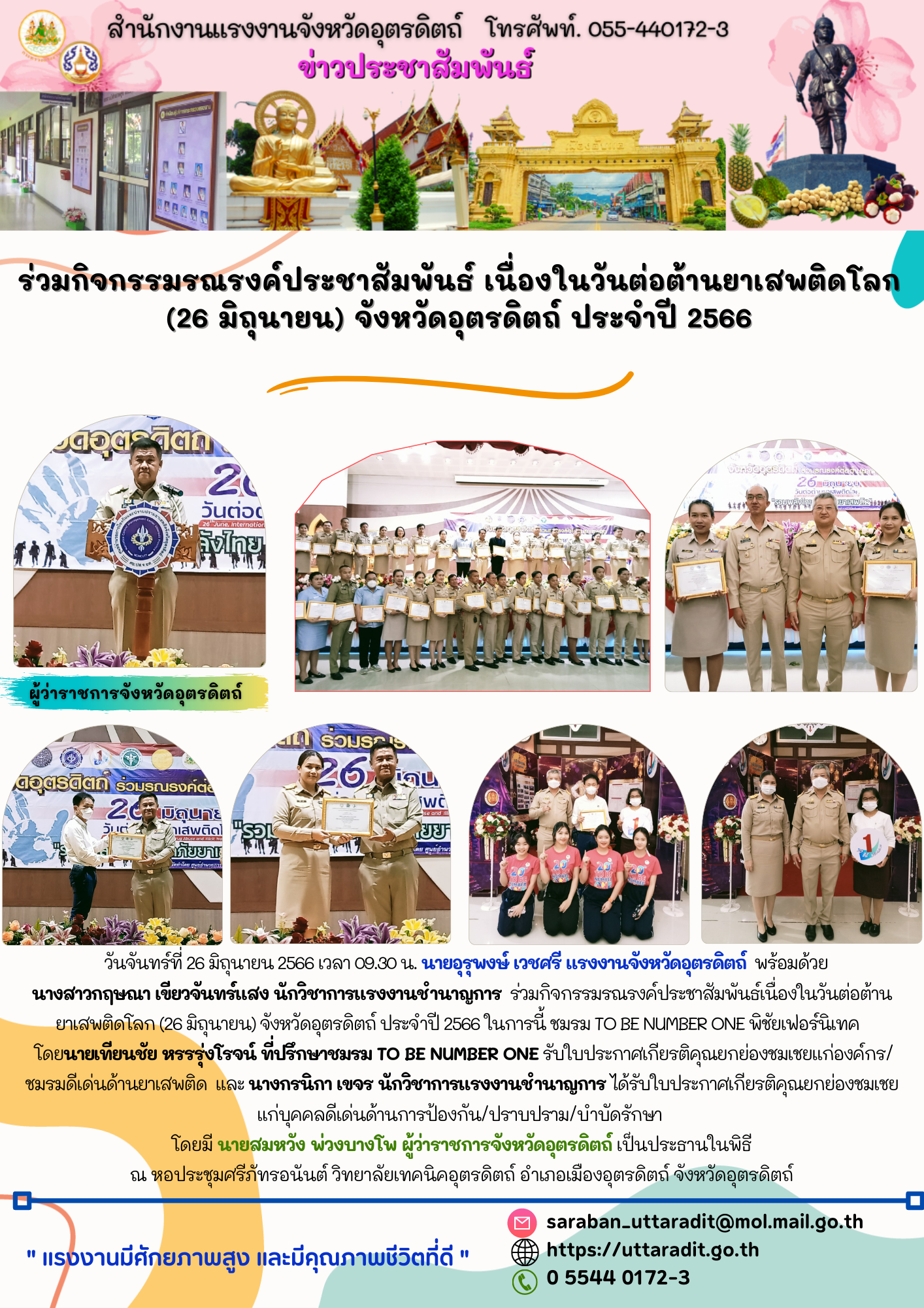 สรจ.อต. ร่วมกิจกรรมรณรงค์ประชาสัมพันธ์ เนื่องในวันต่อต้านยาเสพติดโลก (26 มิถุนายน) จังหวัดอุตรดิตถ์ ประจำปี 2566