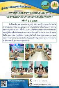 แรงงานจังหวัดตรัง ร่วมการประชุมคณะอนุกรรมการศูนย์ปฏิบัติการป้องกันและปราบปรามการค้ามนุษย์จังหวัดตรัง ครั้งที่ 1/2566
