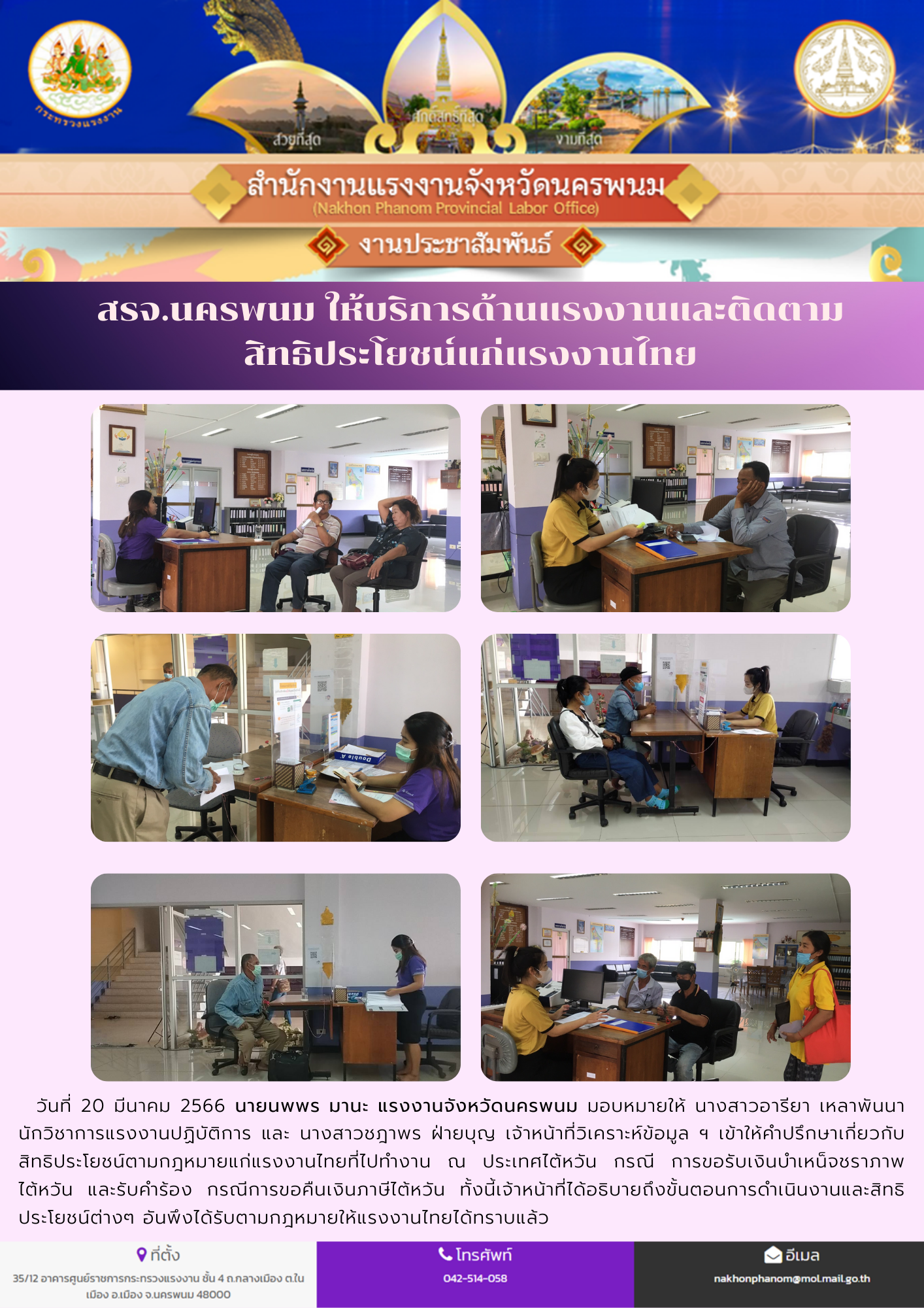 สรจ.นครพนม ให้คำปรึกษาด้านแรงงานแก่แรงงานไทยที่เคยไปทำงาน ณ ต่างประเทศ