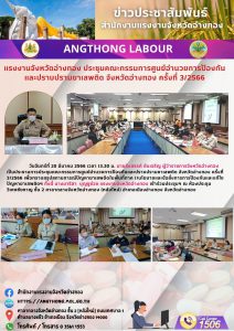 แรงงานจังหวัดอ่างทอง ประชุมคณะกรรมการศูนย์อำนวยการป้องกัน และปราบปรามยาเสพติด จังหวัดอ่างทอง ครั้งที่ 3/2566