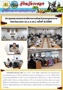 แรงงานจังหวัดระยอง ร่วมประชุมคณะกรรมการบริหารงานจังหวัดแบบบูรณาการจังหวัดระยอง (ก.บ.จ.รย.) ครั้งที่ 4/2566