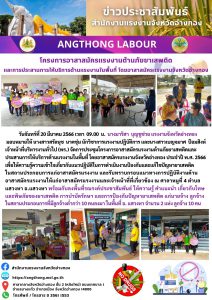 สรจ.อ่างทอง โครงการอาสาสมัครแรงงานต้านภัยยาเสพติด และการประสานการให้บริการด้านแรงงานในพื้นที่ โดยอาสาสมัครแรงงานจังหวัดอ่างทอง