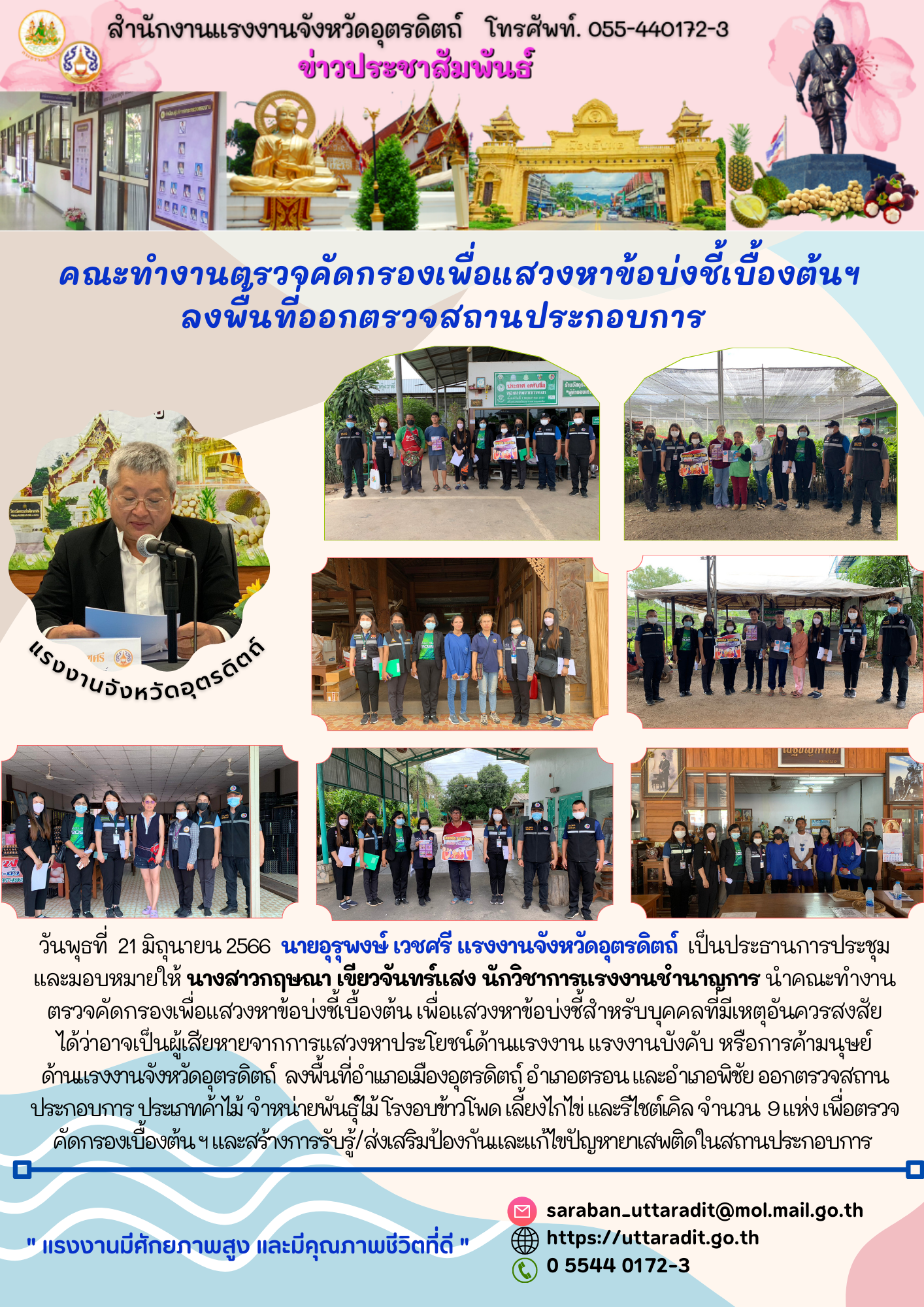 สรจ.อต. ลงพื้นที่ตรวจคัดกรองเพื่อแสวงหาข้อบ่งชี้เบื้องต้นฯ ลงพื้นที่ออกตรวจสถานประกอบการ อำเภอเมืองอุตรดิตถ์ อำเภอตรอน อำเภอพิชัย