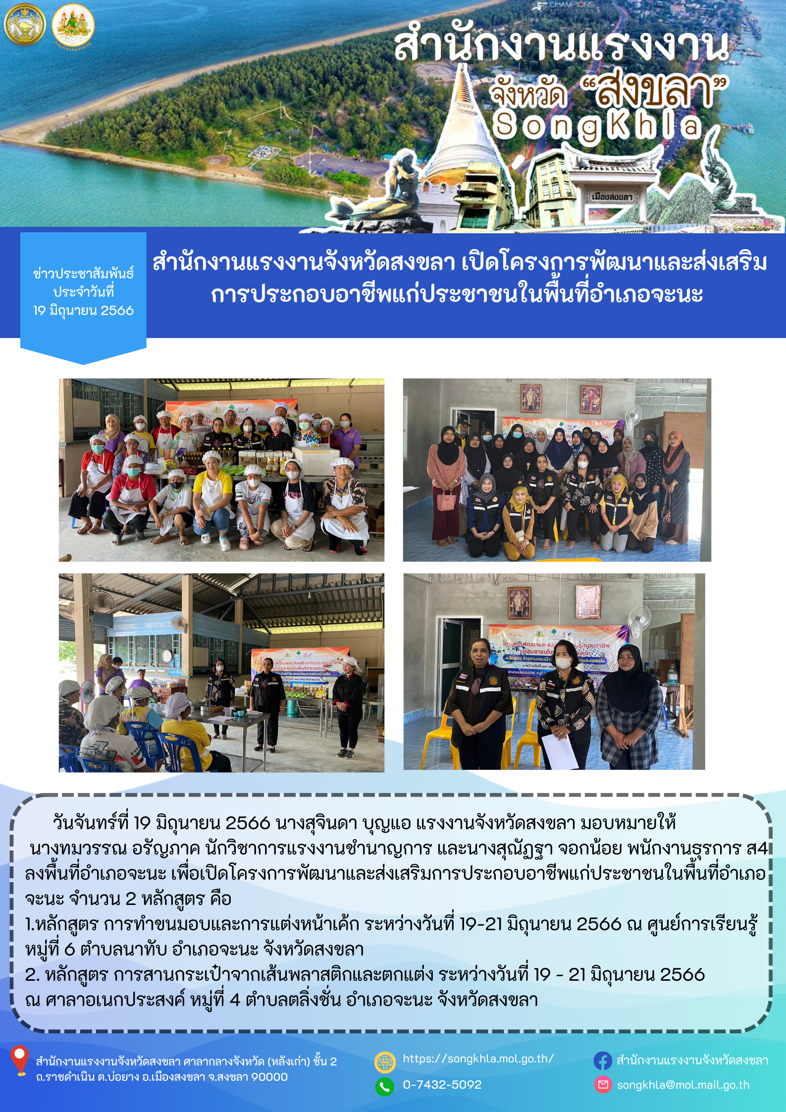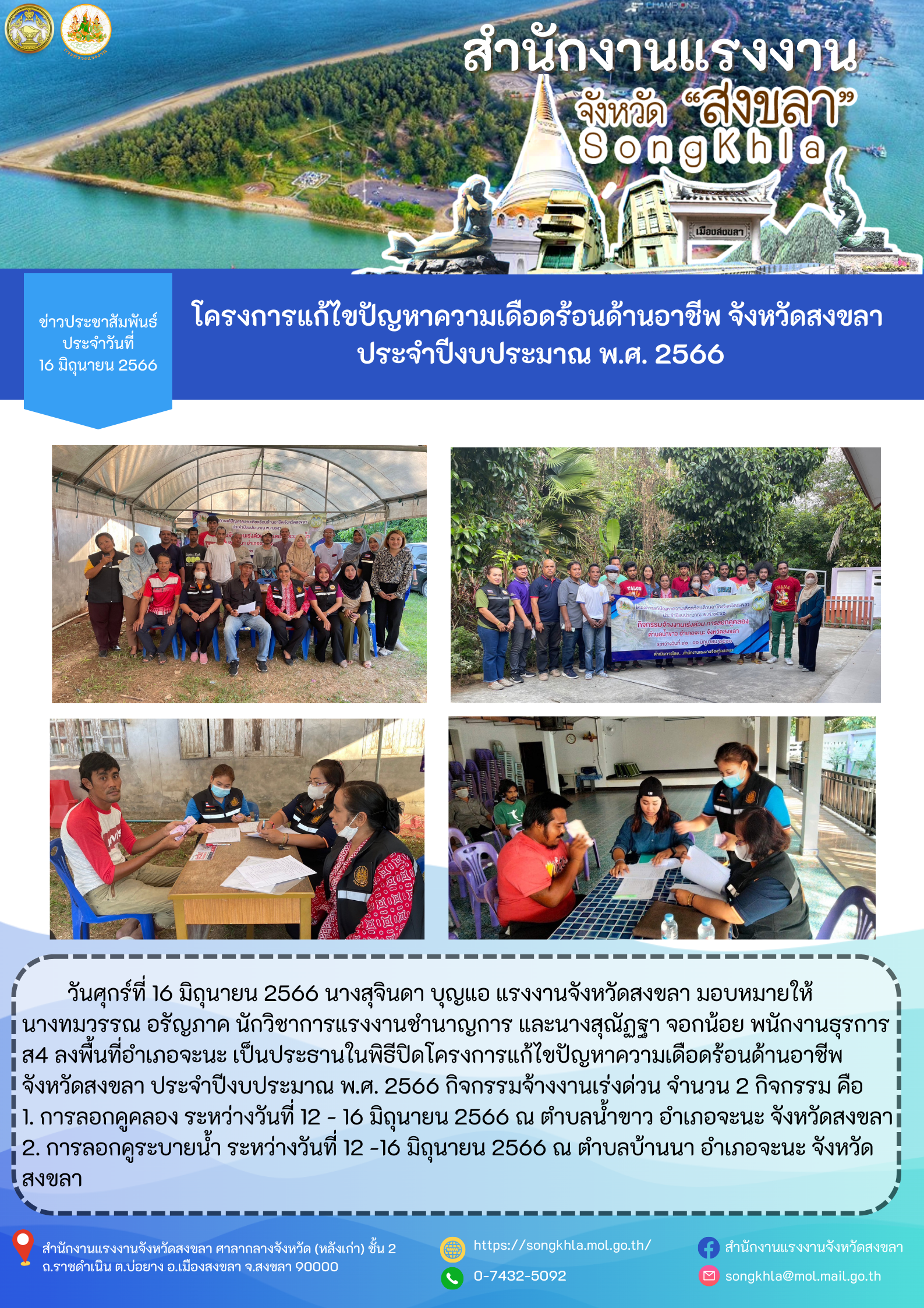 สรจ.สงขลา โครงการแก้ไขปัญหาความเดือดร้อนด้านอาชีพ จังหวัดสงขลา ประจำปีงบประมาณ พ.ศ. 2566
