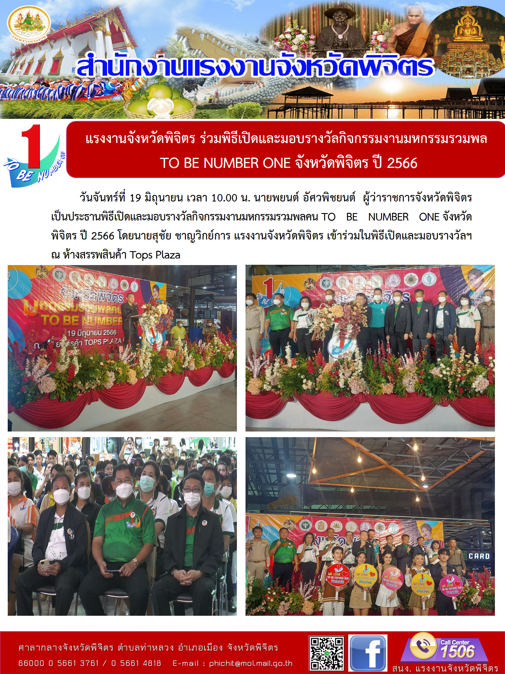 สรจ.พิจิตร ร่วมพิธีเปิดและมอบรางวัลกิจกรรมงานมหกรรมรวมพล TO BE NUMBER ONE จังหวัดพิจิตร ปี 2566