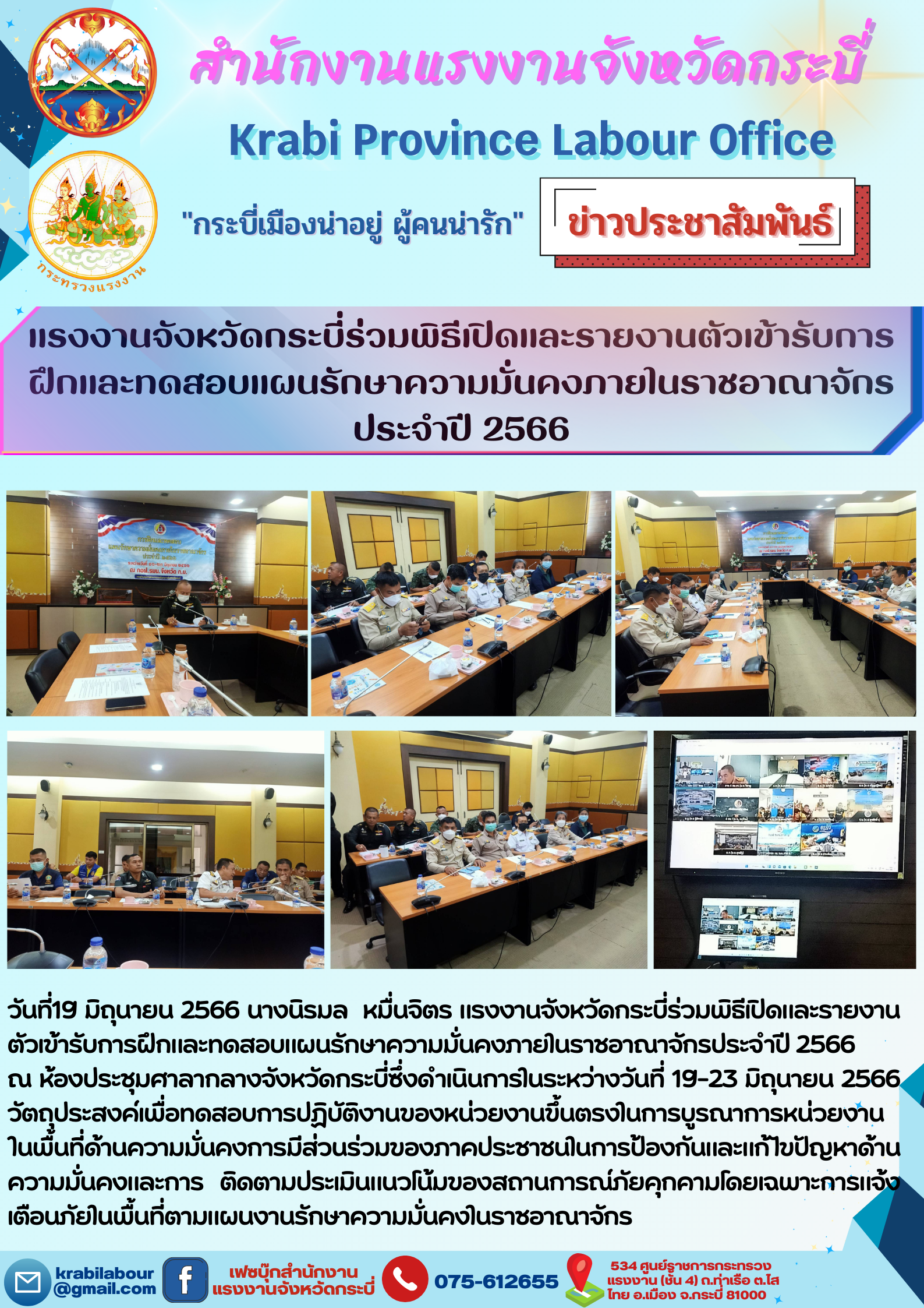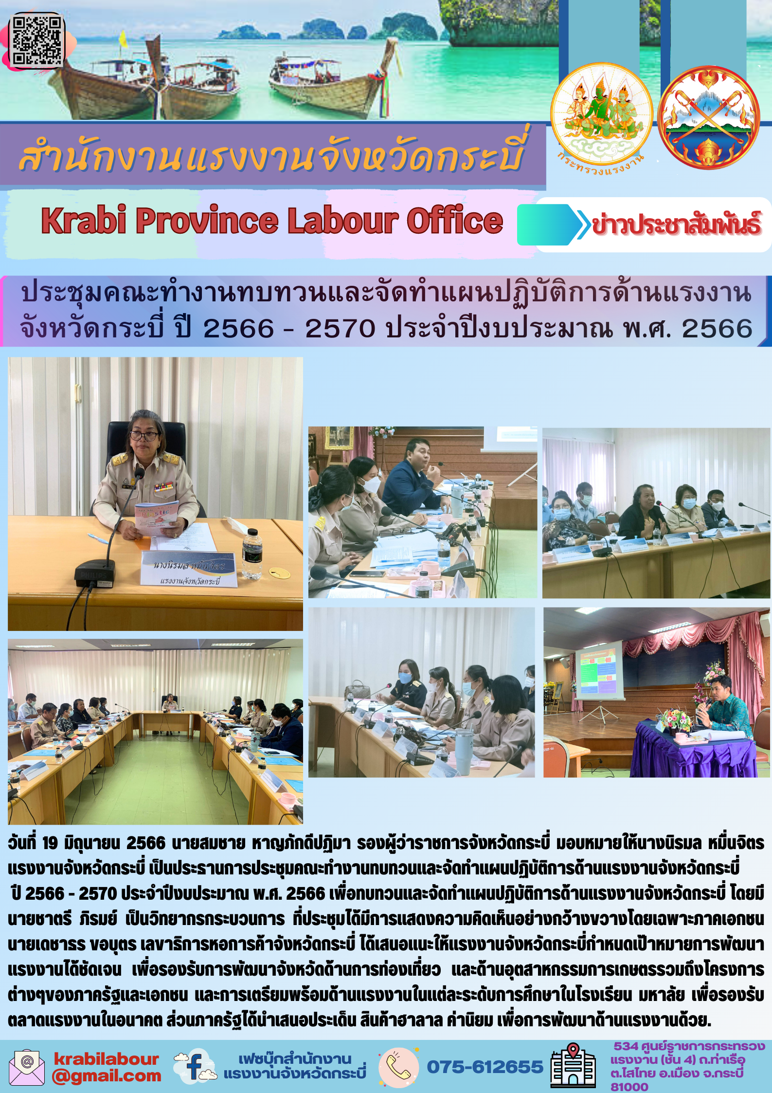 สรจ.กระบี่ ประชุมคณะทำงานทบทวนและจัดทำแผนปฏิบัติการด้านแรงงานจังหวัดกระบี่ ปี 2566 – 2570 ประจำปีงบประมาณ พ.ศ. 2566