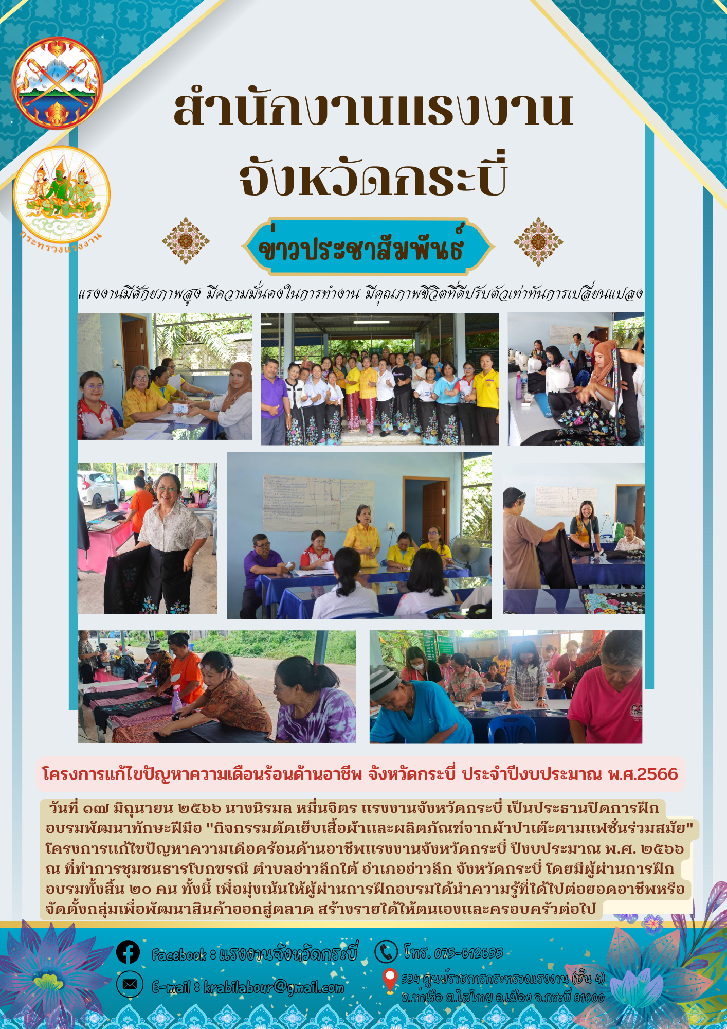 สรจ.กระบี่ ลงพื้นที่ปิดโครงการกิจกรรมพัฒนาทักษะฝีมือกิจกรรมตัดเย็บเสื้อผ้าและผลิตภัณฑ์จากผ้าปาเต๊ะตามแฟชั่นร่วมสมัย ตำบลอ่าวลึกใต้ อำเภออ่าวลึก จังหวัดกระบี่