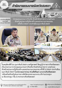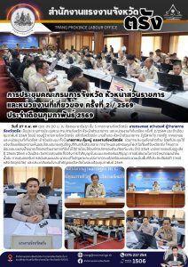 แรงงานจังหวัดตรัง ร่วมการประชุมคณะกรมการจังหวัด หัวหน้าส่วนราชการ และหน่วยงานที่เกี่ยวข้อง ครั้งที่ 2/2569 ประจำเดือนกุมภาพันธ์ 2569