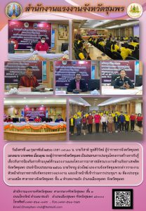 แรงงานจังหวัดชุมพร จัดโครงการสร้างการรับรู้เกี่ยวกับการป้องกันการค้ามนุษย์ด้านแรงงานและโครงการอาสาสมัครแรงงานต้านภัยยาเสพติดจังหวัดชุมพร